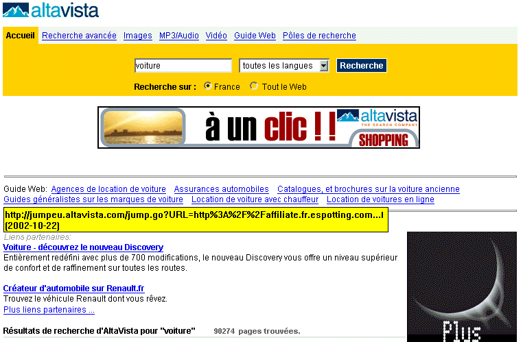 avec Espotting pour délivrer des liens commandités